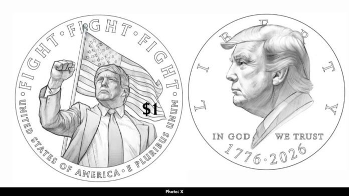 The U.S. Treasury Department is exploring a new $1 Trump Coin to commemorate the 250th anniversary of American independence in 2026. A draft design depicts President Donald Trump with his fist raised under an American flag, accompanied by the words “Fight, Fight, Fight.” The phrase recalls Trump’s shout after surviving an assassination attempt at a rally in Pennsylvania last year.