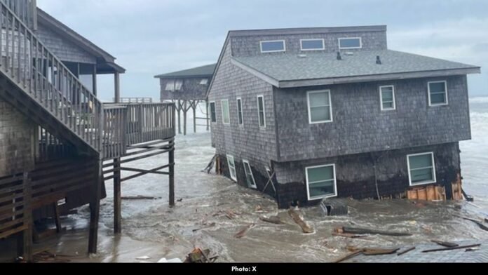 On Tuesday, five houses in Buxton, North Carolina, collapsed into the Atlantic Ocean due to storm-driven surf caused by Hurricane Humberto and Tropical Storm Imelda. Cape Hatteras National Seashore confirmed that all homes were unoccupied, preventing any casualties. The collapse occurred over 45 minutes between 2:00 p.m. and 2:45 p.m.