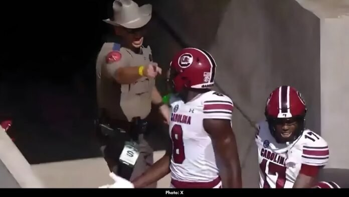 A widely circulated video from the game shows the trooper brushing shoulders with two South Carolina players during their matchup against the Texas A&M Aggies. After the initial contact, the trooper appeared to shout at the players as they walked through the tunnel — a moment many viewers described as “intimidating.” The footage sparked strong backlash online.